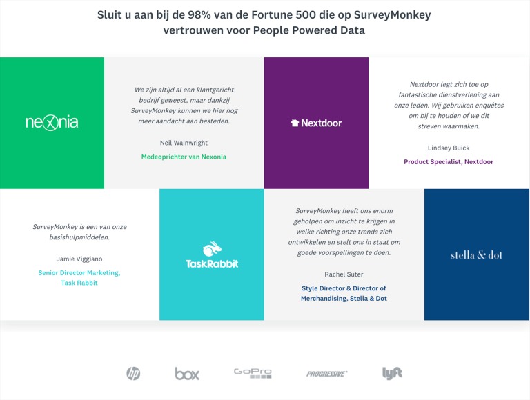 例如,témoignages de Survey Monkey开始提到《财富500强》验证。她利用了所有的企业和品牌的创立者的引用。这些品牌的商标来自惠普和GoPro。