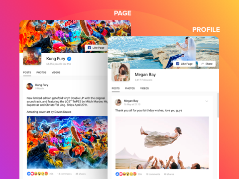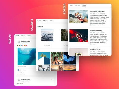 3个可显示类型的Facebook内容:帖子,视频和与专辑的照片