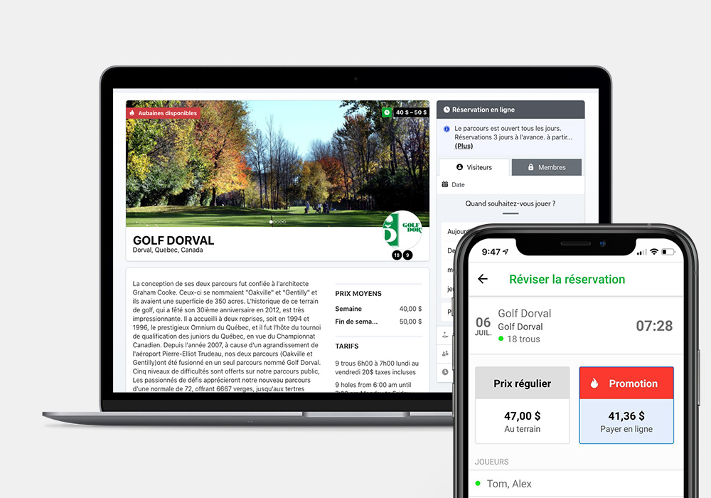PermettezàvosGolfeursdeRéserverLeursHeuresdedépartQuand Cela Leur Surnient En Utilisant LaRéservationen Ligne。que ce suit sur votre网站web ou通过votre申请手机,les golfeurs peuventréserveret付款人quelques clics spulement,ce quicréeuneexpériencessans并发症。